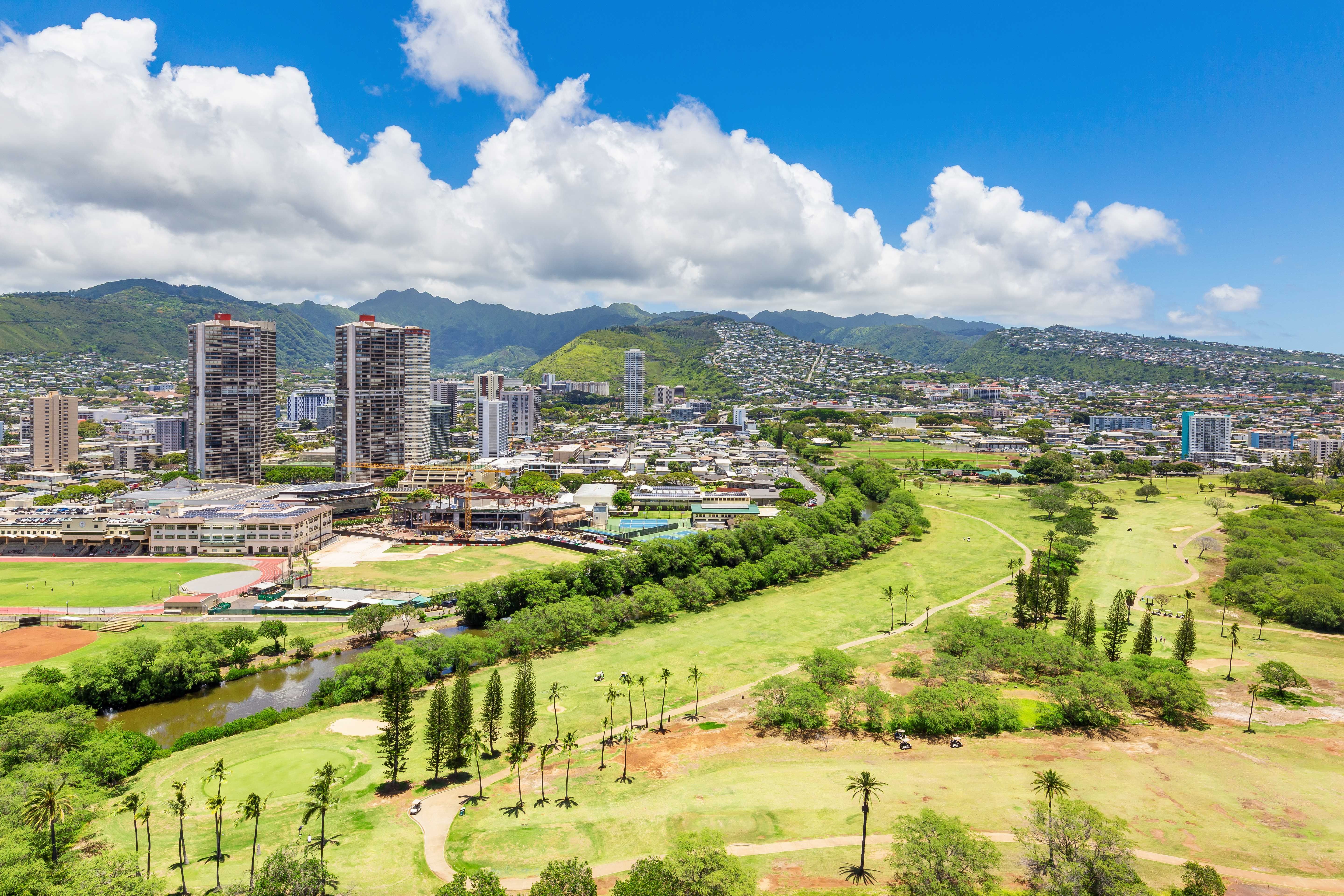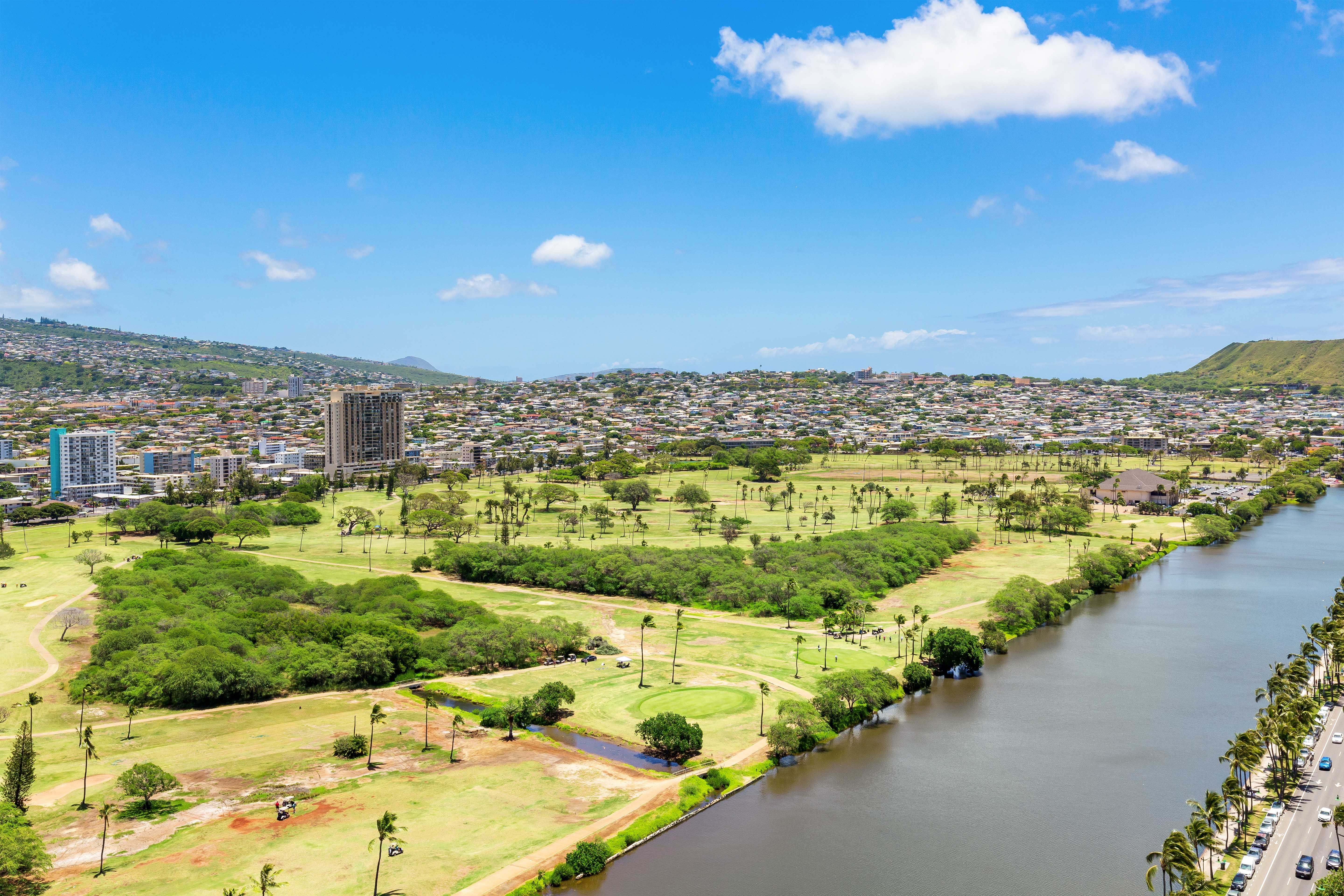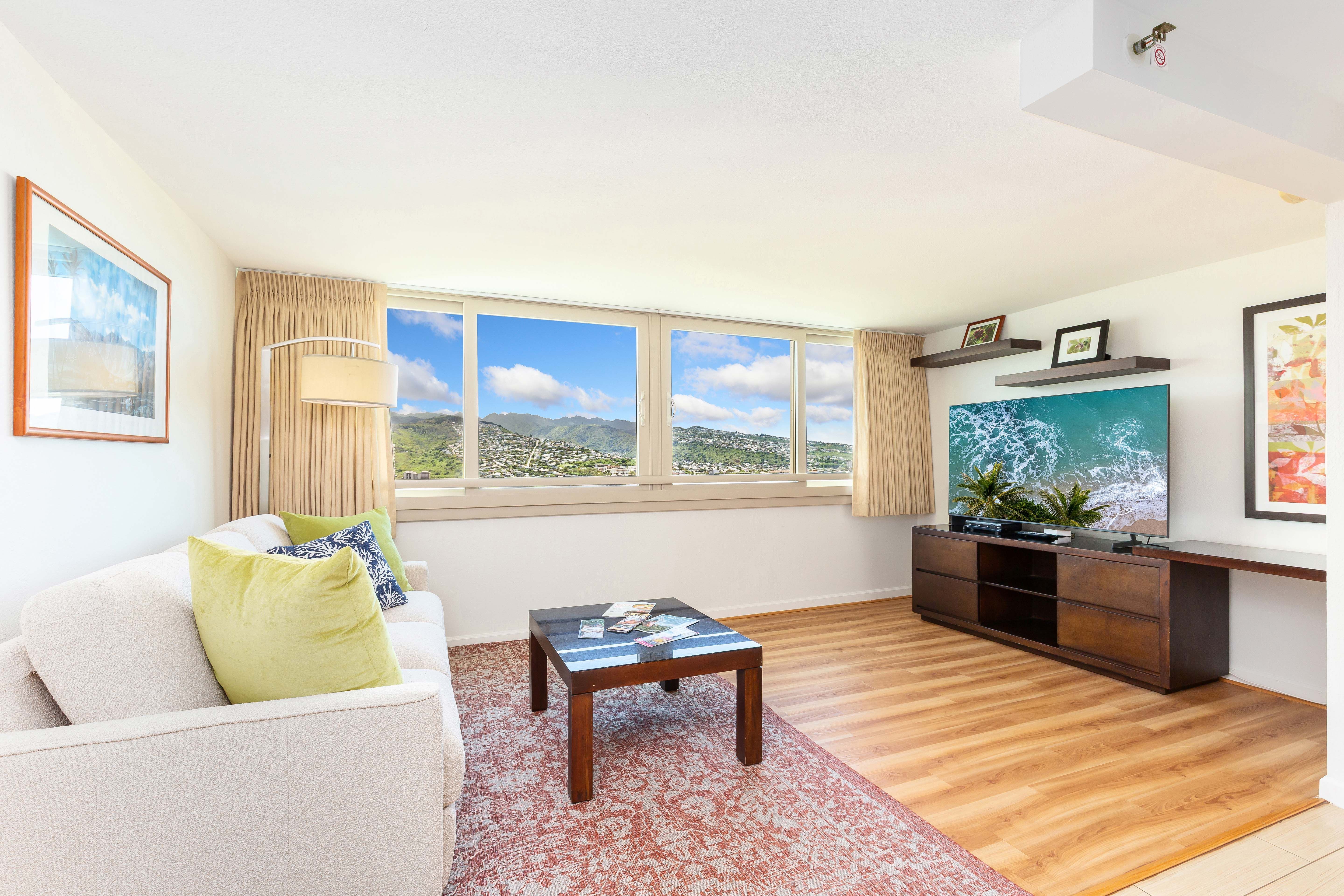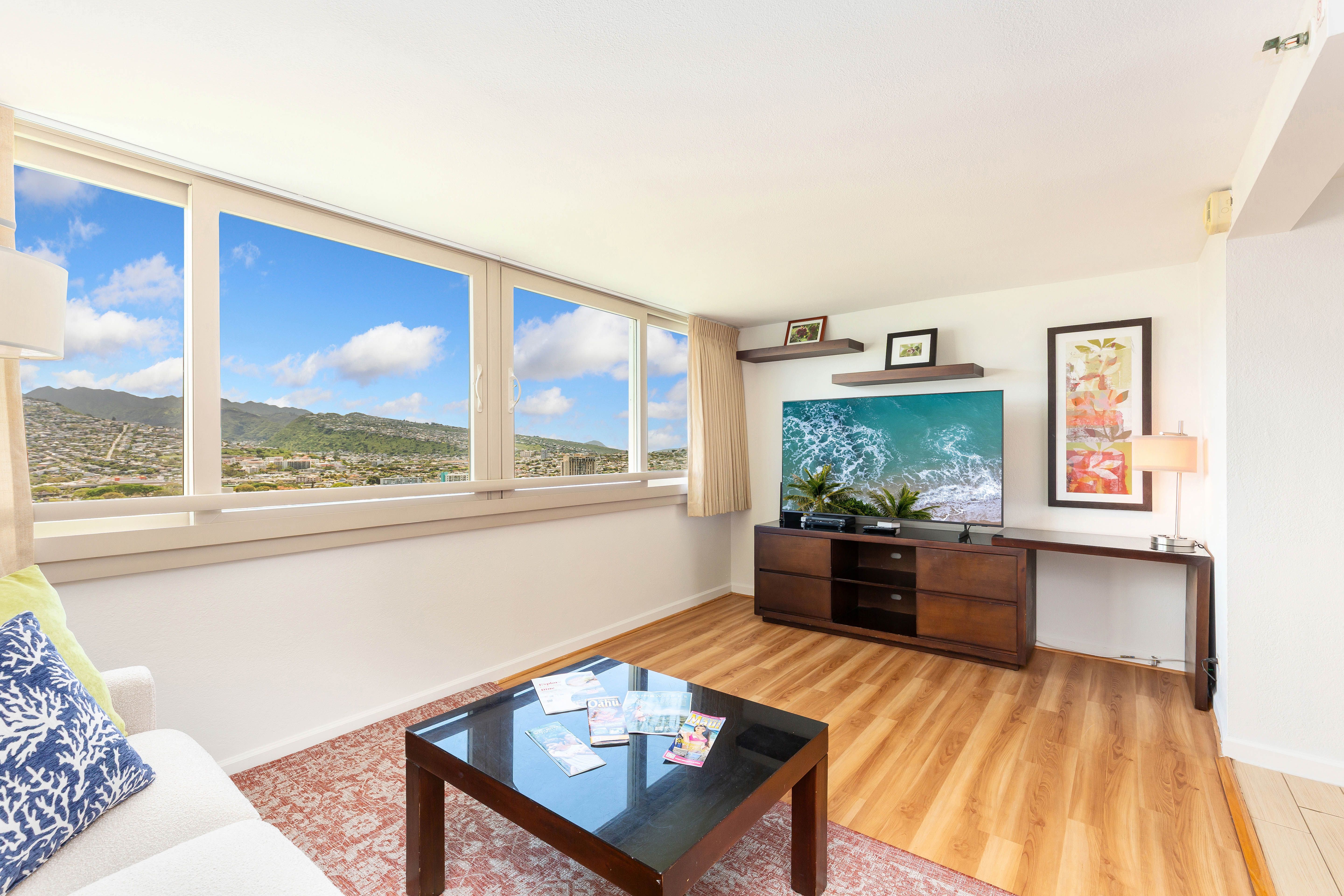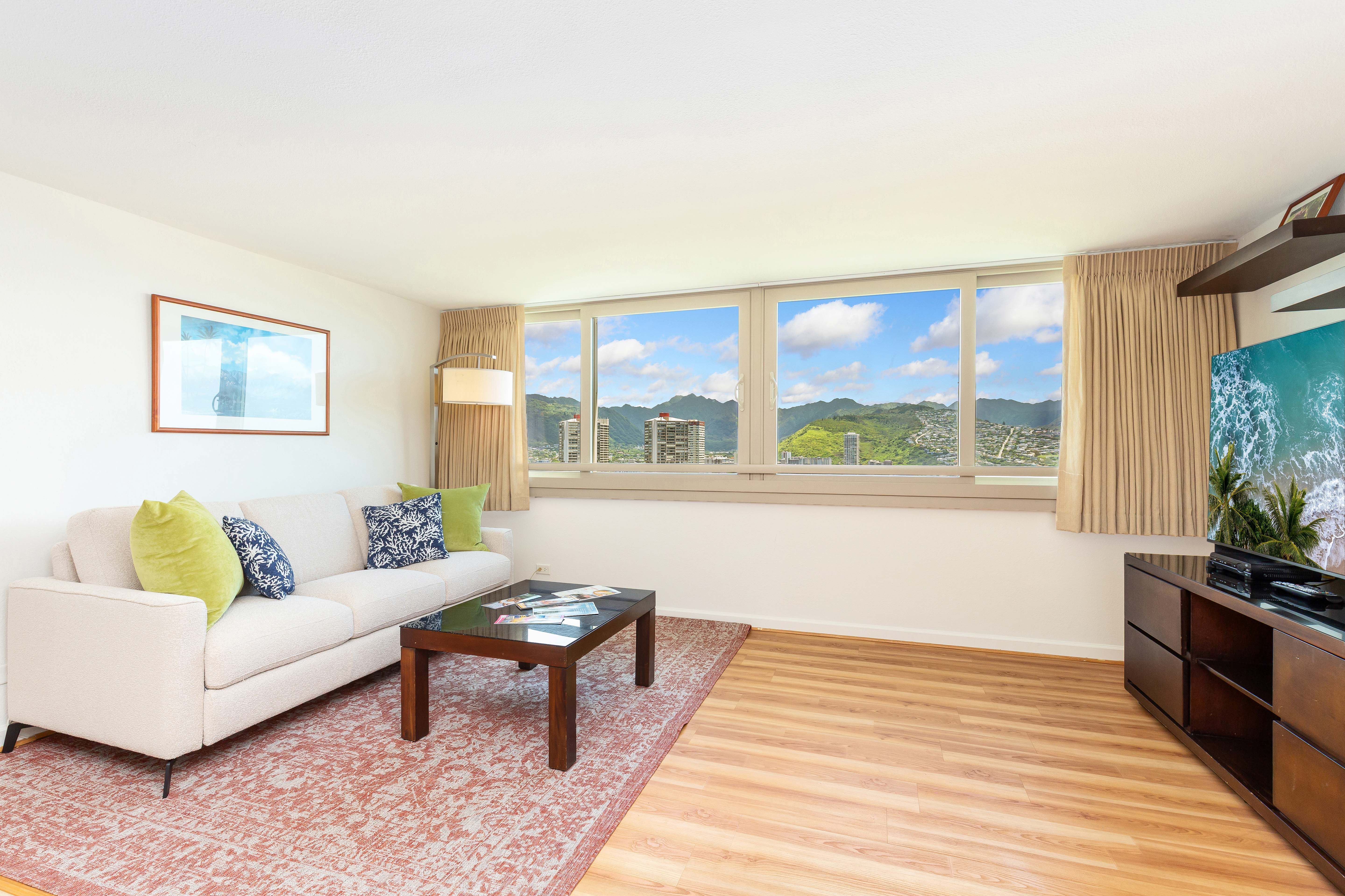 Enjoy stunning views of Ala Wai and the majestic mountains