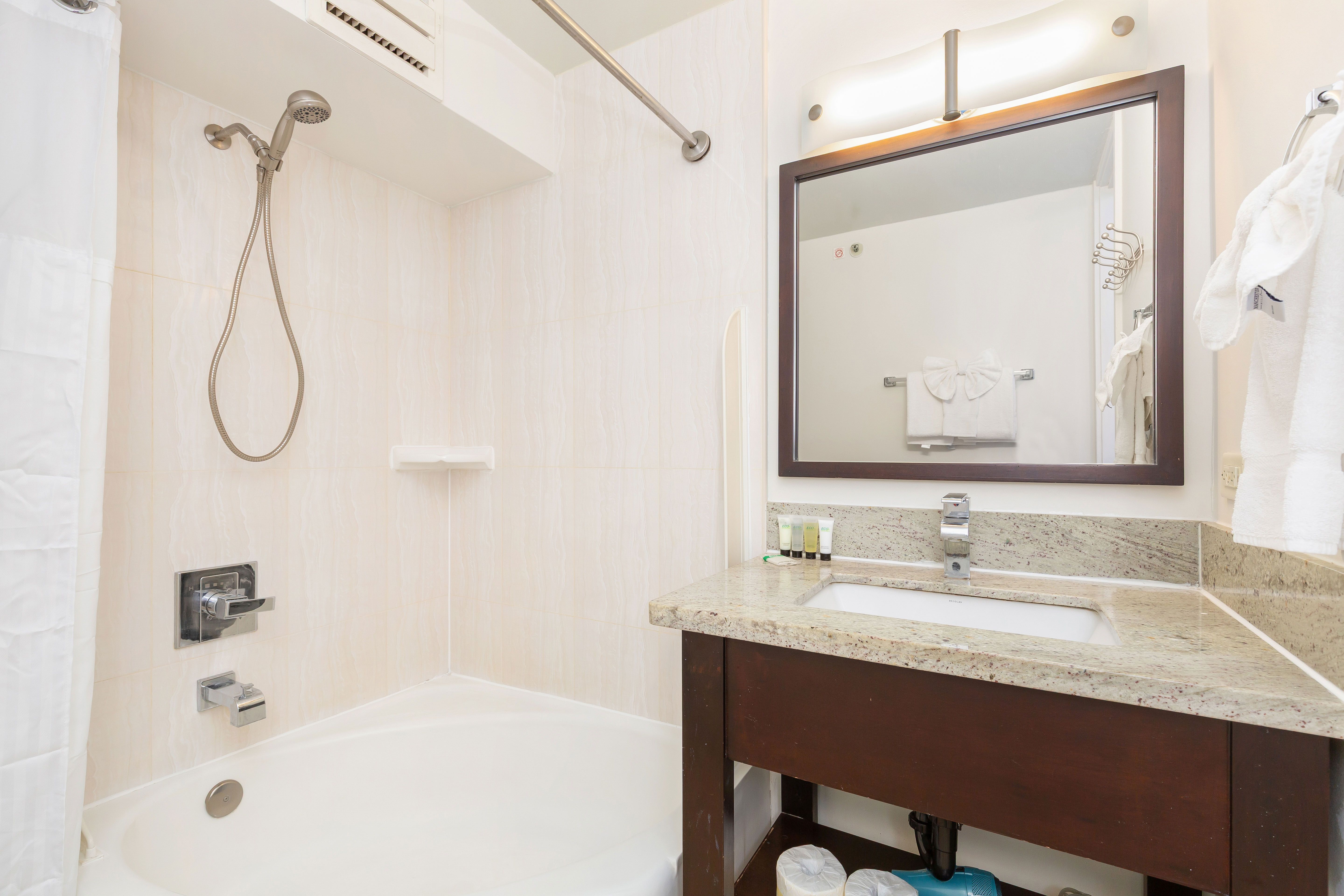 Thoughtfully designed bathroom with a mirror and vanity space