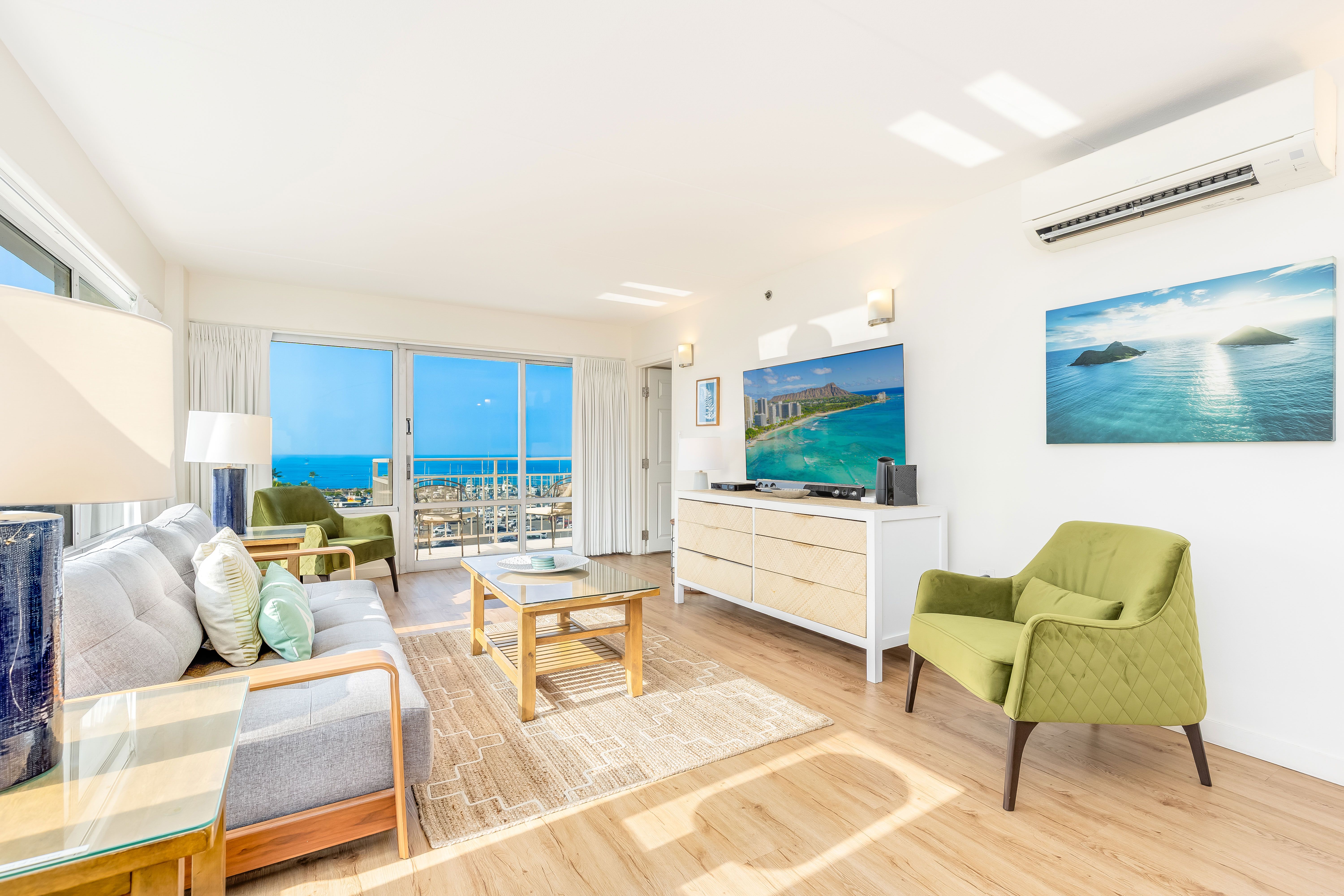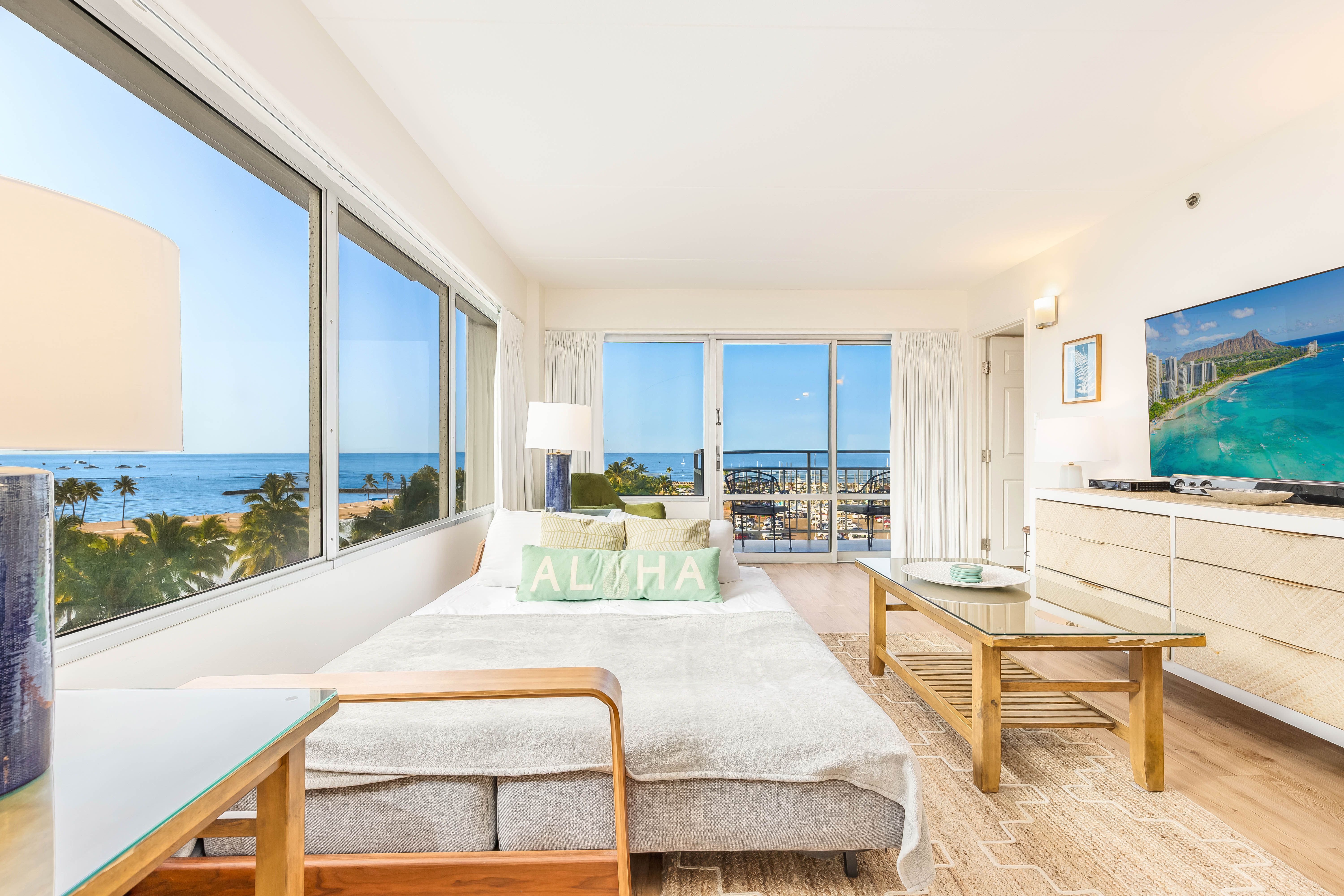 Sofa bed in the living room with ocean view!
