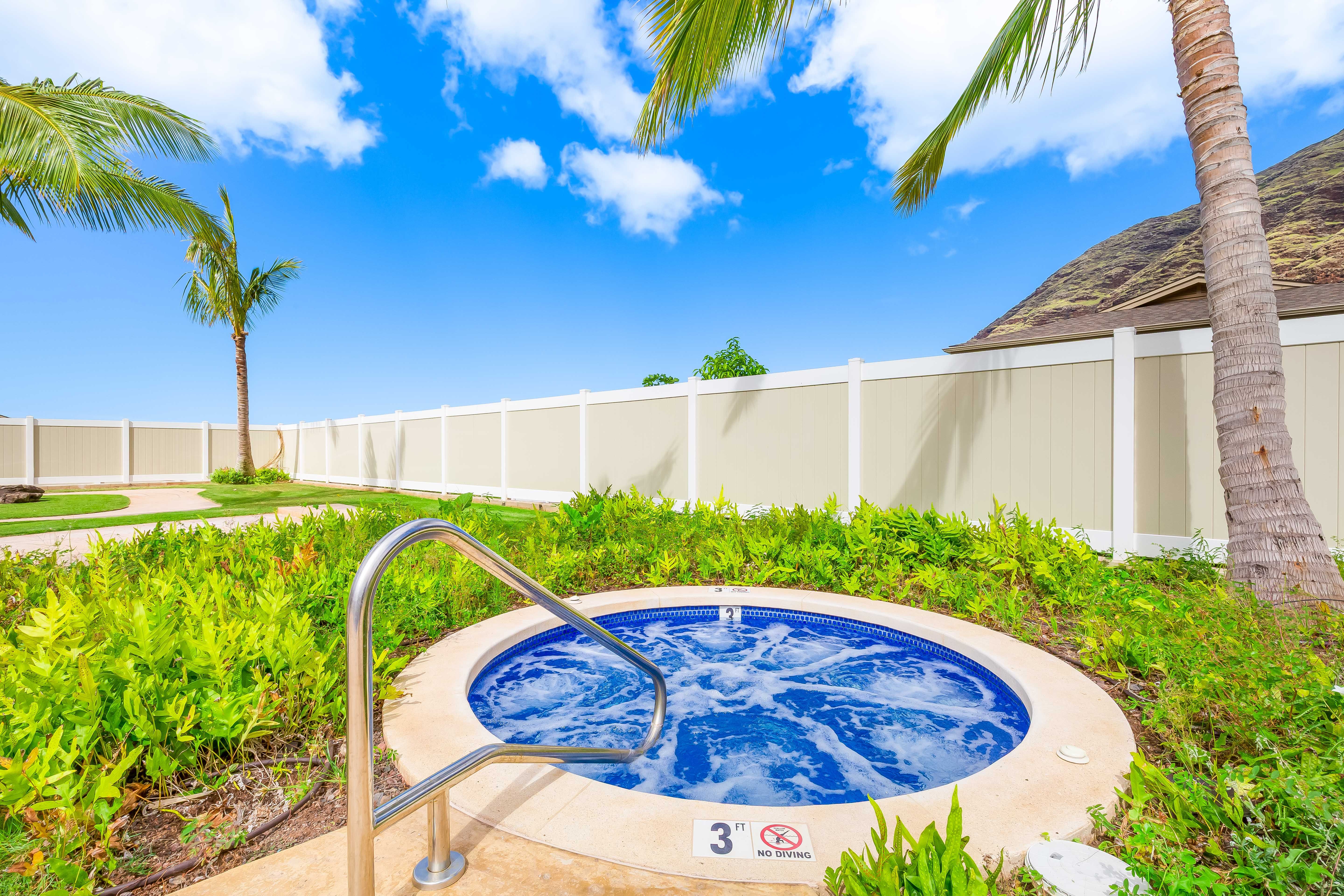 Unwind in the hot tub after a day of island adventures