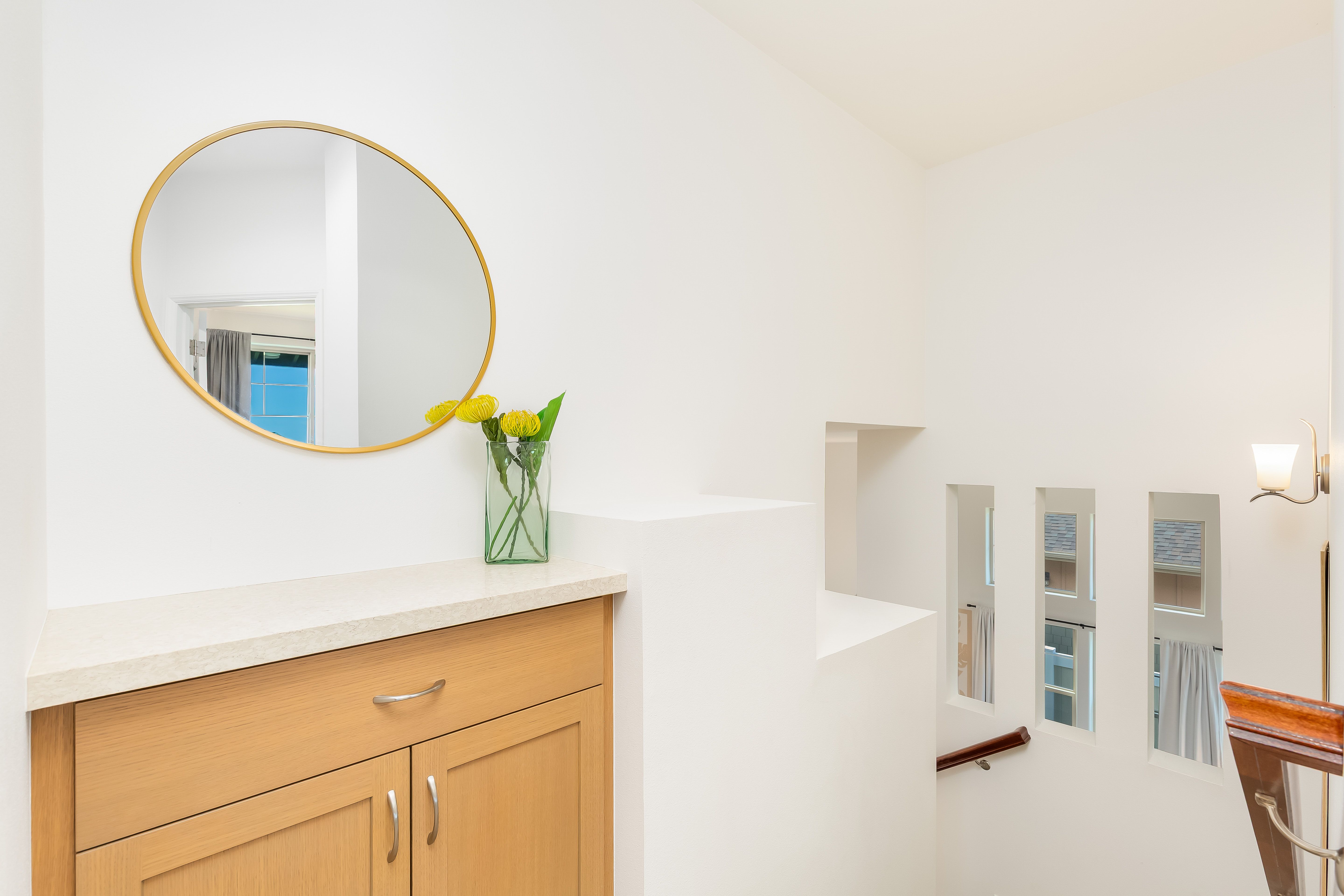 Upstairs hallway connecting the two cozy bedrooms