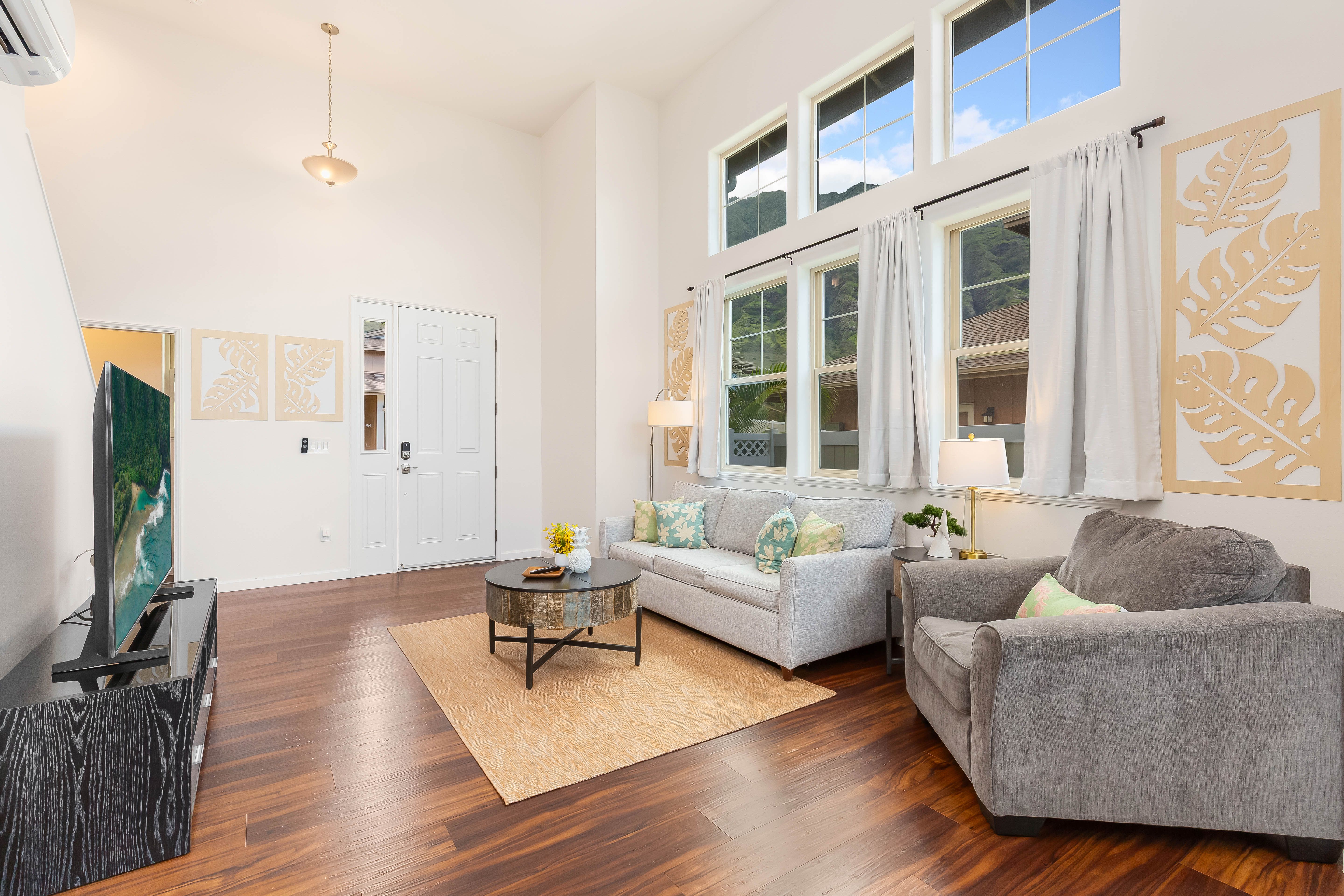 Spacious and airy living room with high ceilings