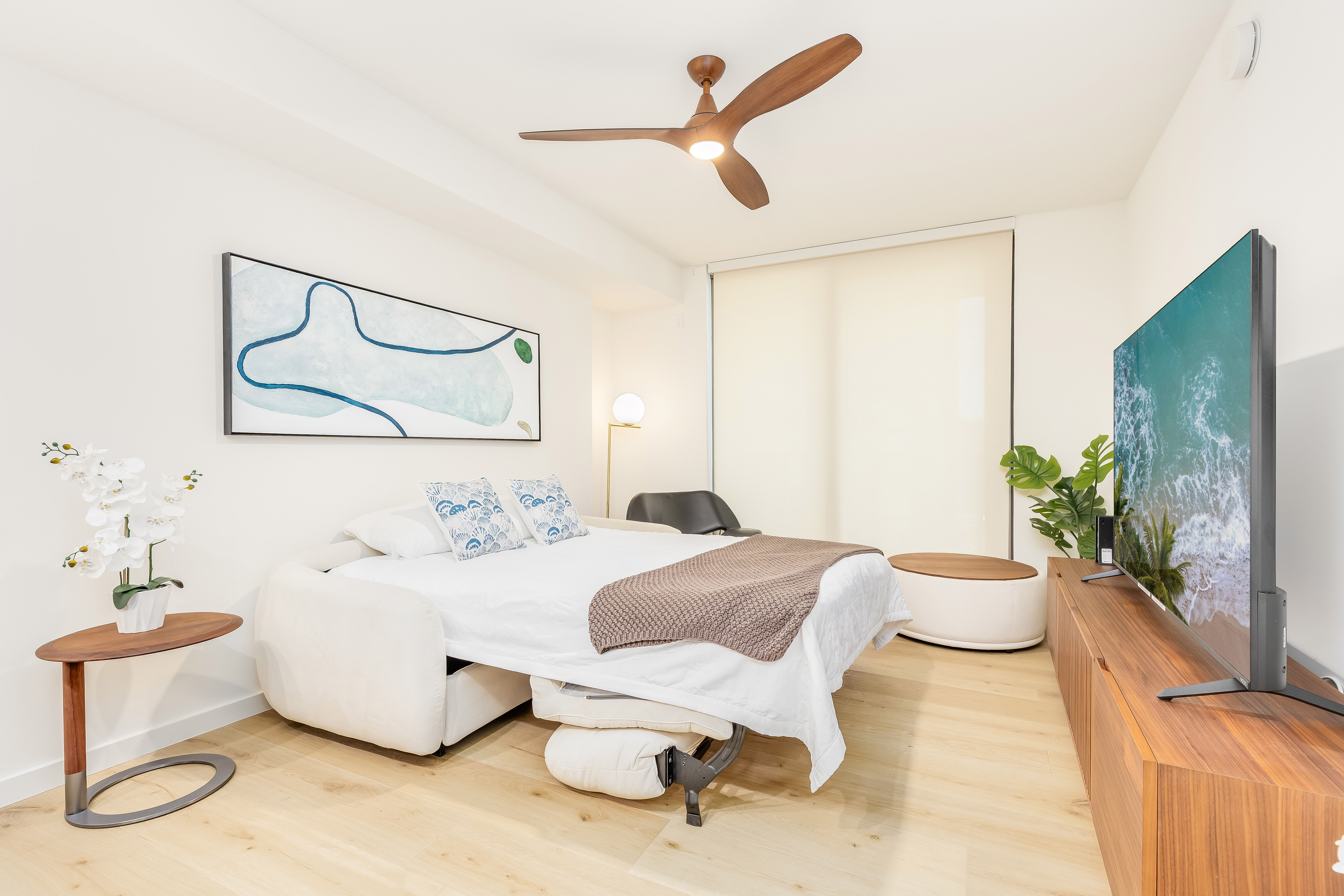 Spacious bedroom with king bed and ocean view