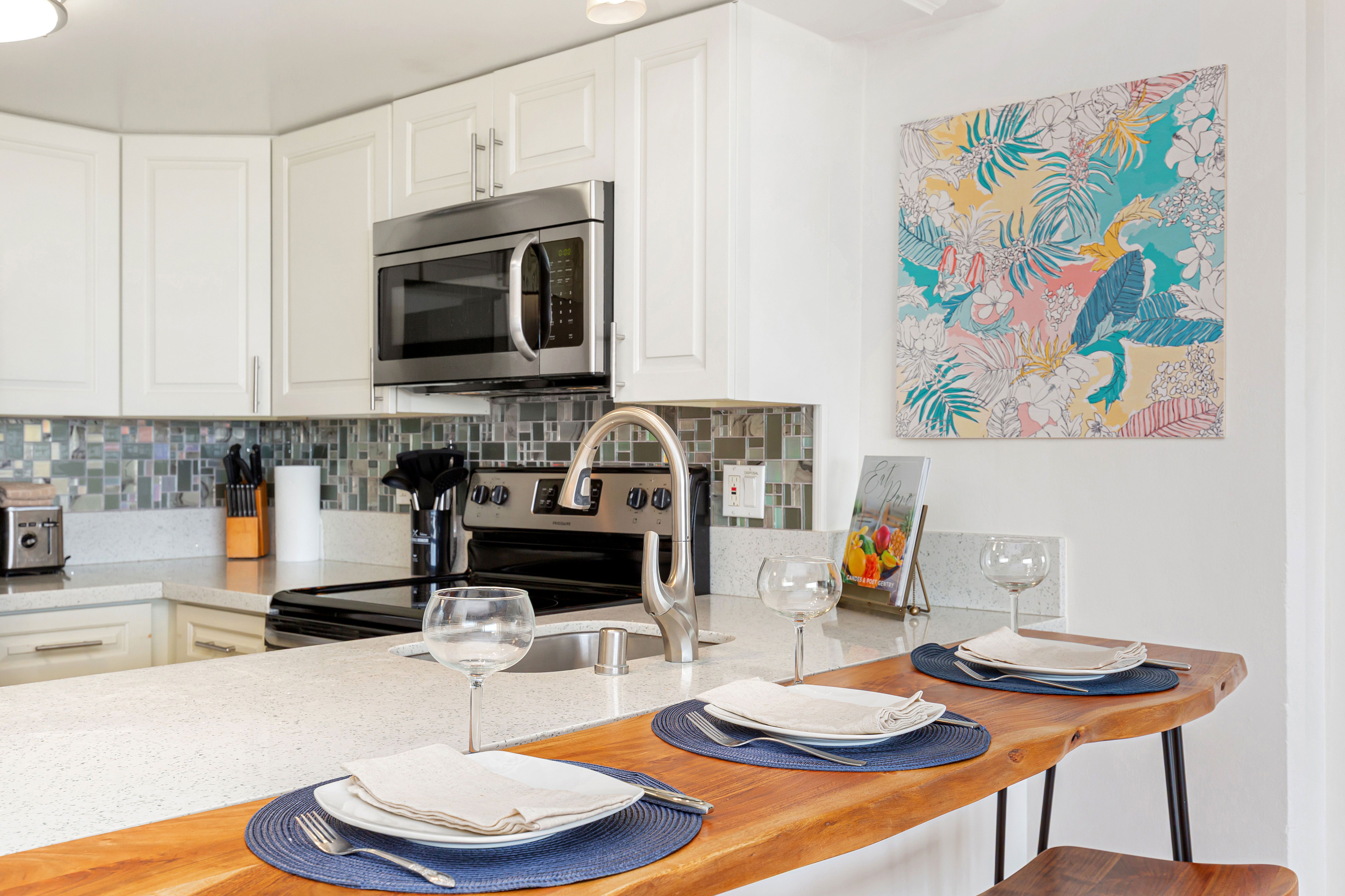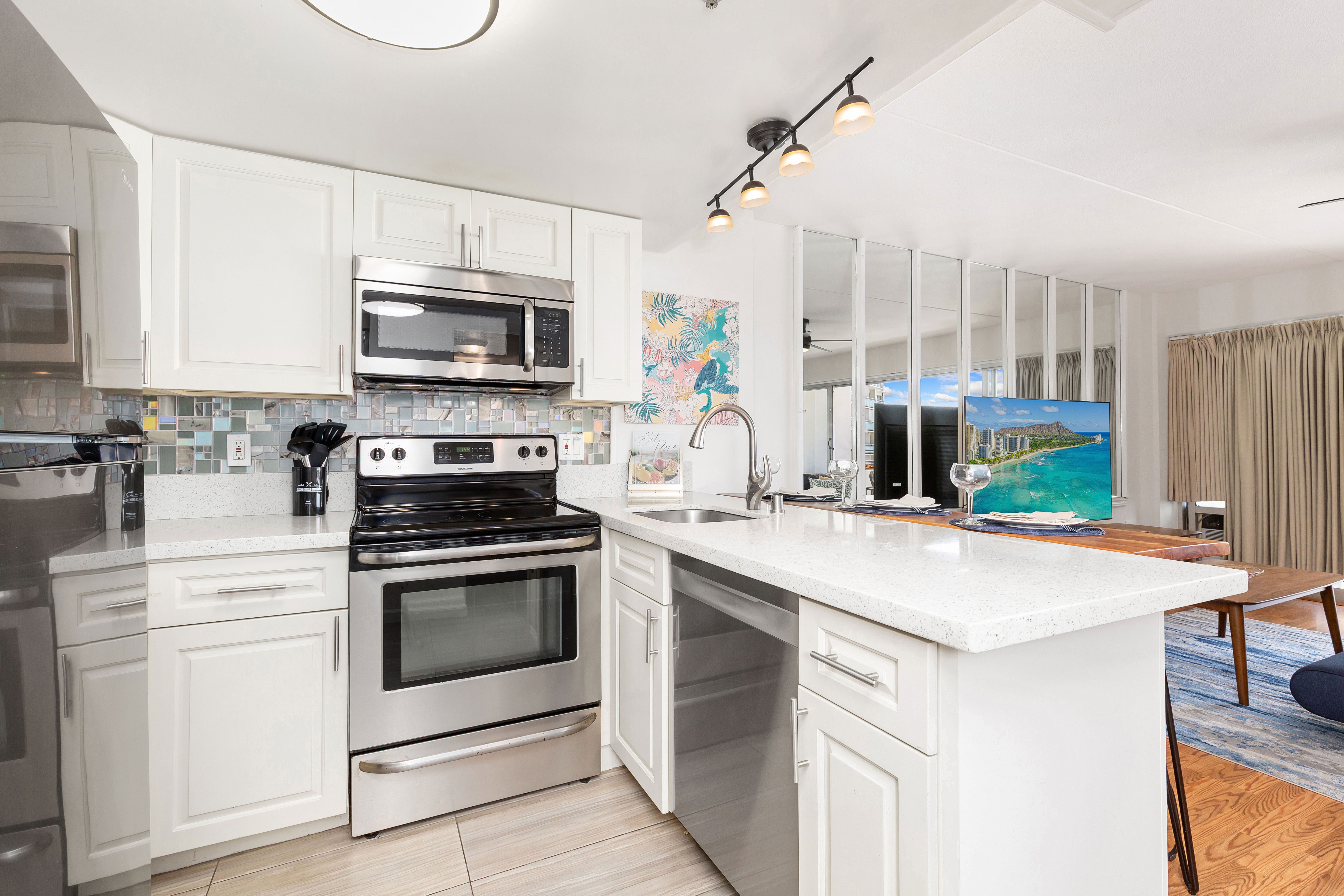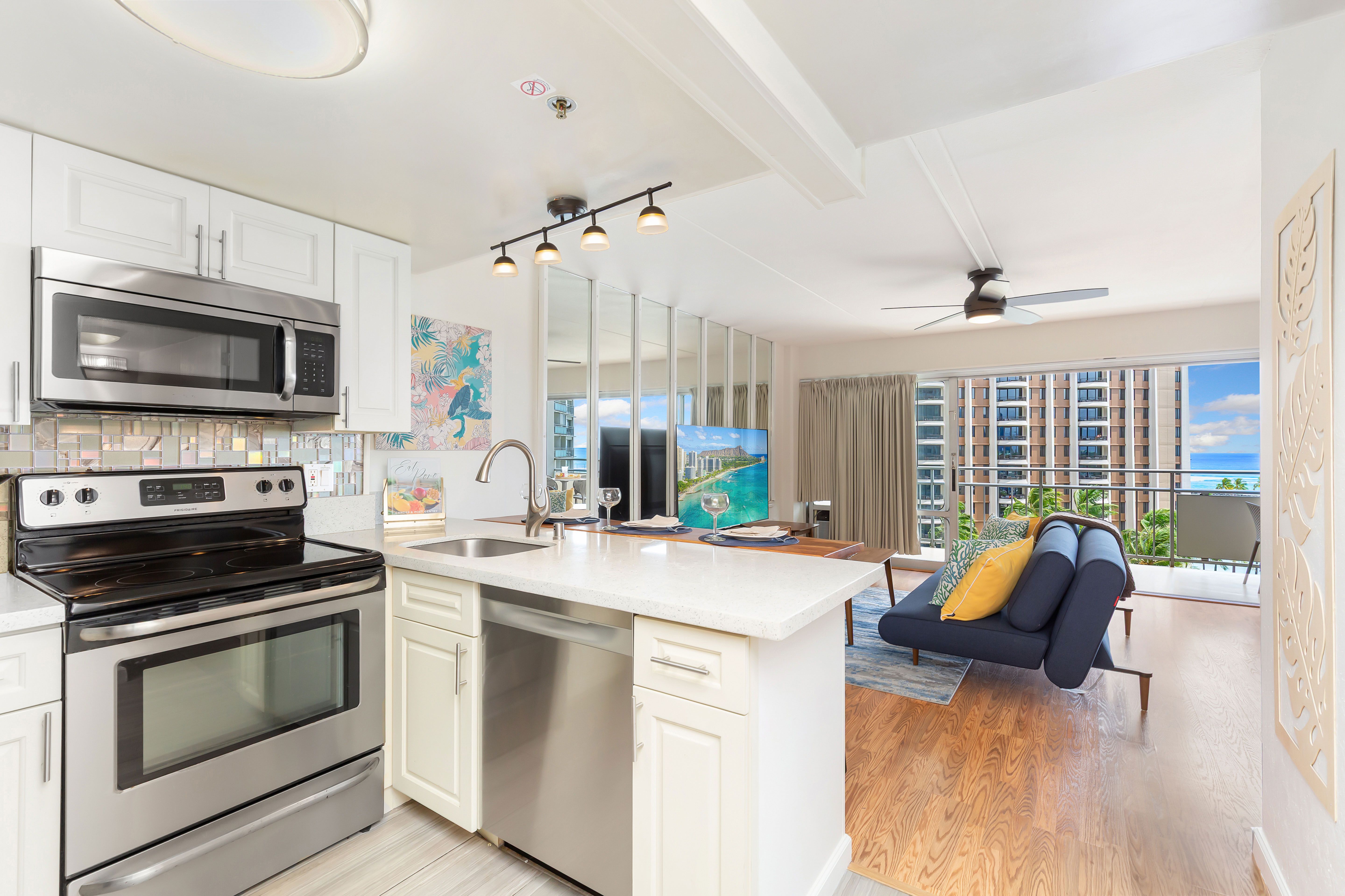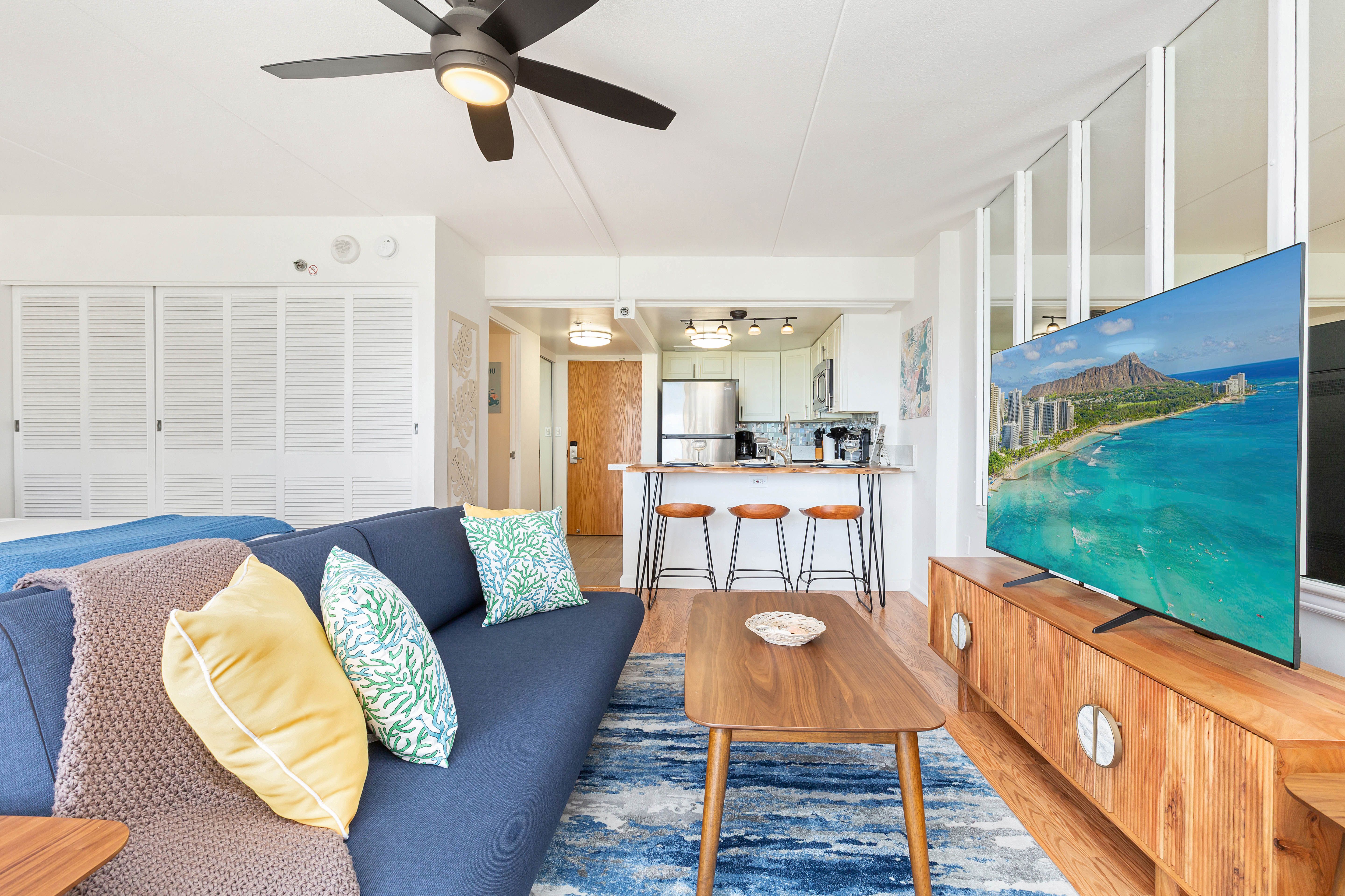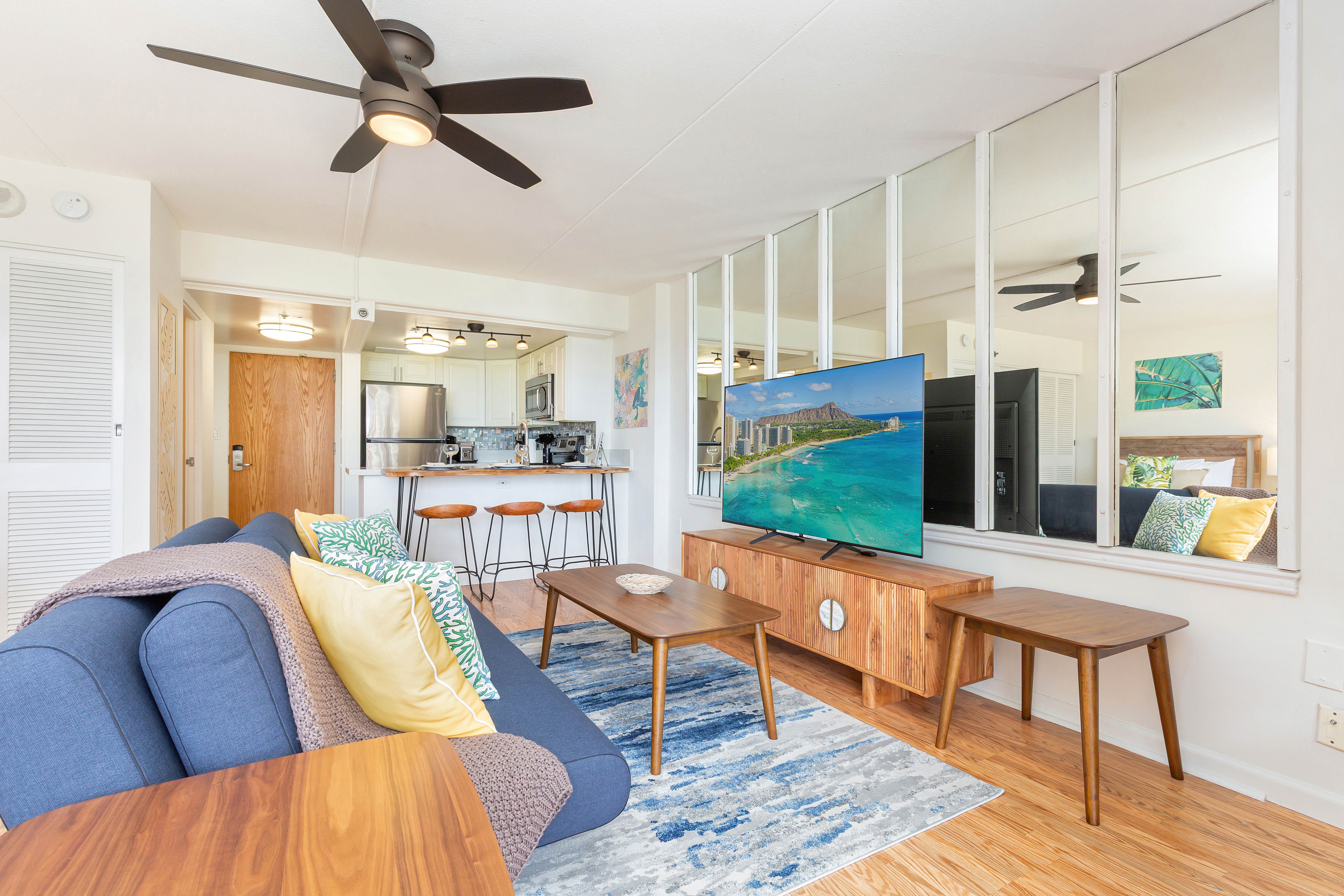 Aloha vibes only in this open-concept living space