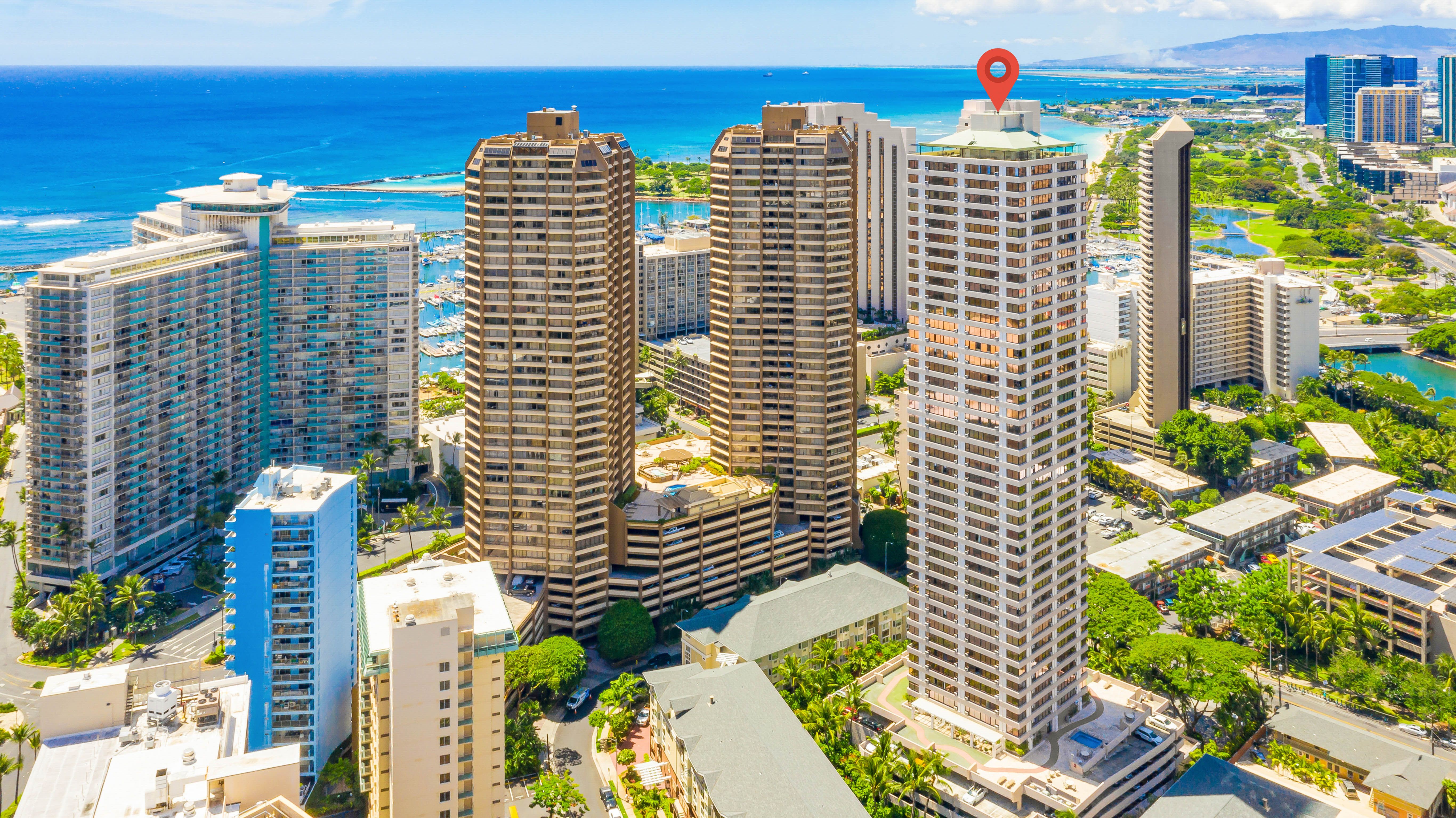 The Waikiki Windsor is located at 343 Hobron Lane, walking distance to the Ala Moana Shopping Center at the west end of Waikiki. The marina is just across the street and Ala Moana Beach Park is but a leisurely stroll away! Those who have experienced Discovery Bay know that the views and the location are amazing! This condo is perfectly located on the quiet side of Waikiki where it meets Ala Moana District, yet near enough to catch all the excitement of Waikiki, galleries, and museums. Lounge around and enjoy the panoramic ocean views, walk down the street to your favorite Waikiki restaurant, or spend a lazy afternoon just lounging on the beach. This location has it all!