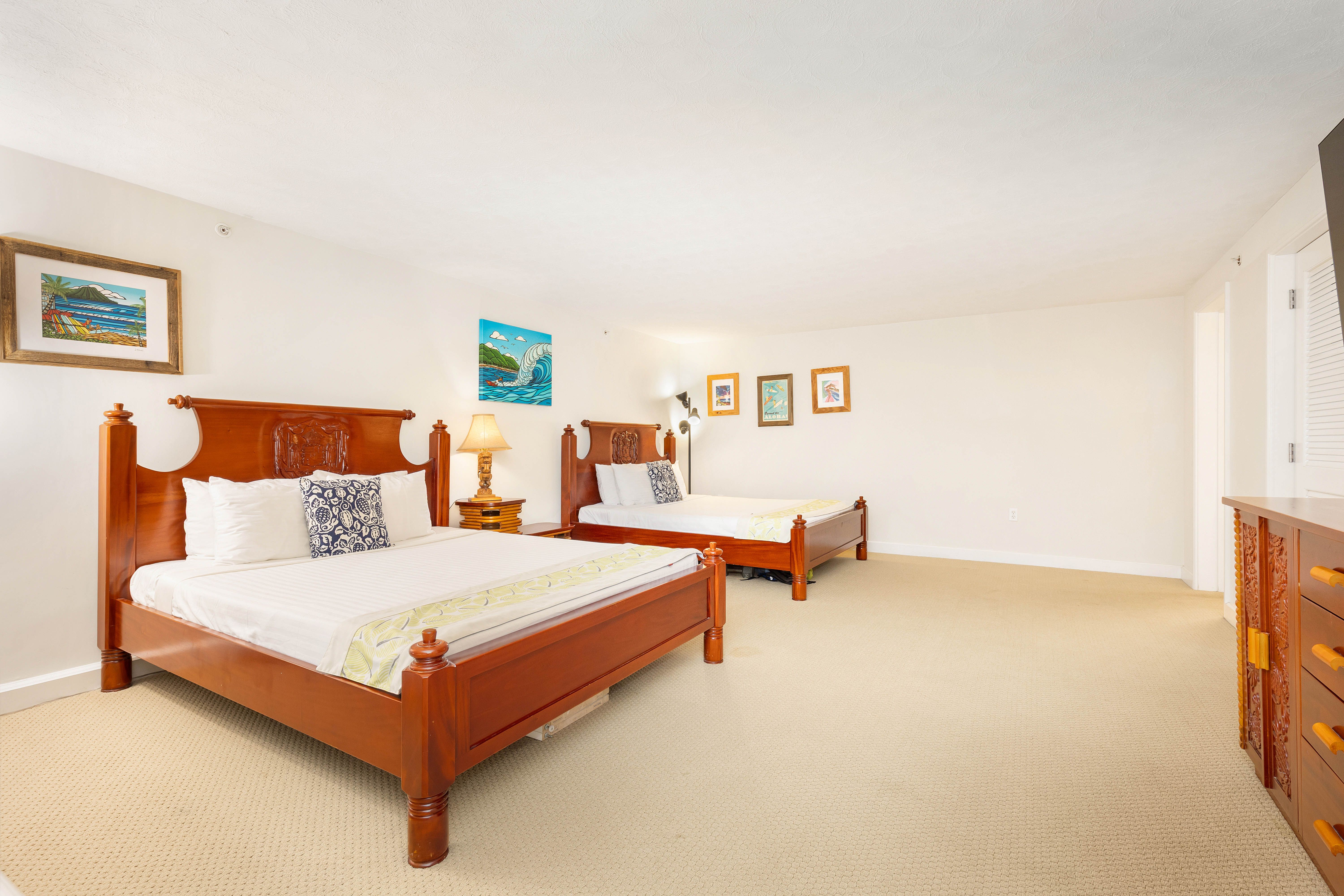 Aloha and thank you for taking the time to leave us a review! We are glad you enjoyed your stay at the condo and it was very spacious and in a great location. We appreciate your feedback about the carpet and we will make sure to schedule a cleaning soon. If you haven't already, please make sure to sign up for our Alii Beach Rentals loyalty rewards program so you can earn points every time you stay with us and redeem them next time you stay with us for ABC gift cards, dining at Dukes gift certificates, or a free departure cleaning, or a free late check out, and more! We hope you stay with us again soon. Mahalo!