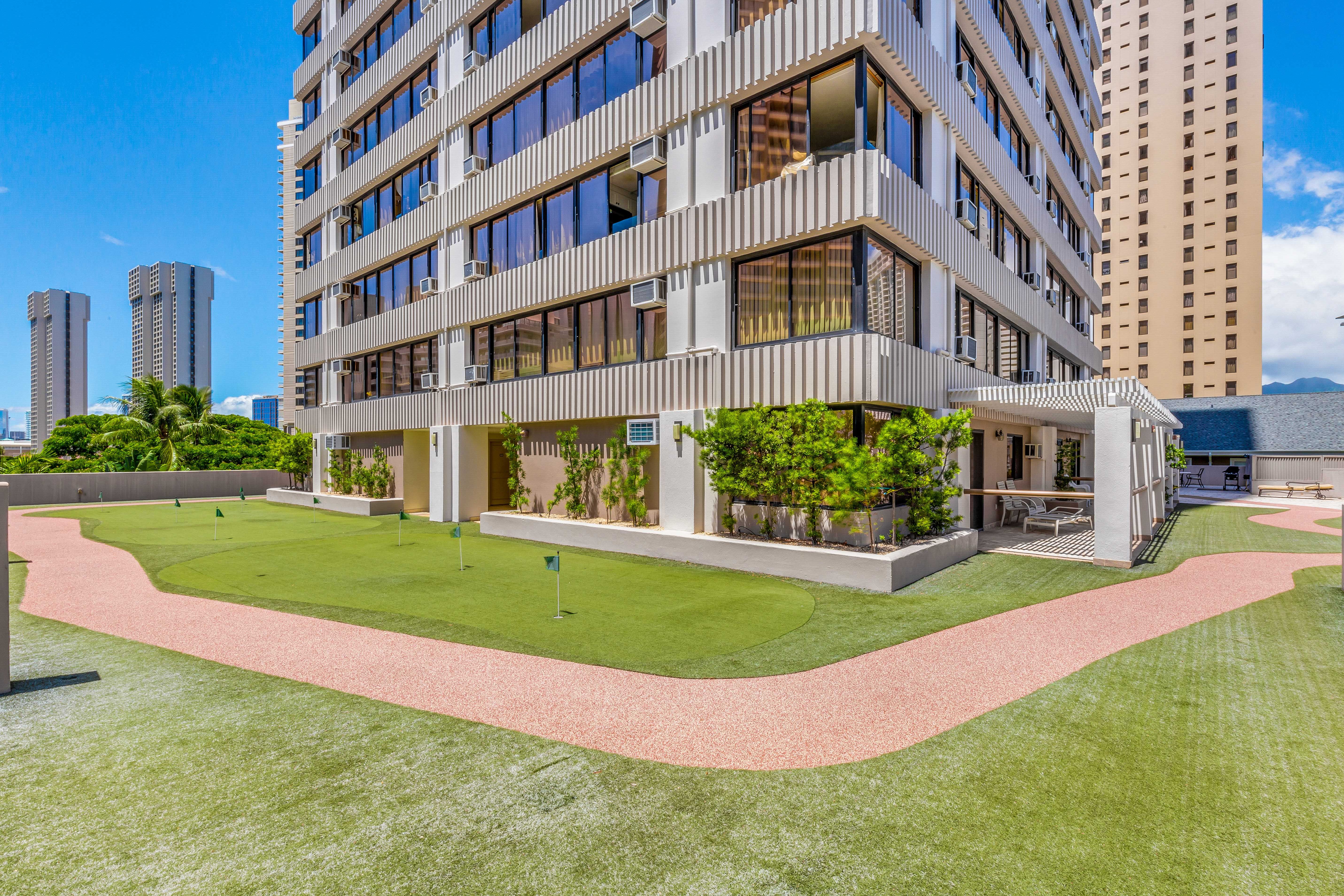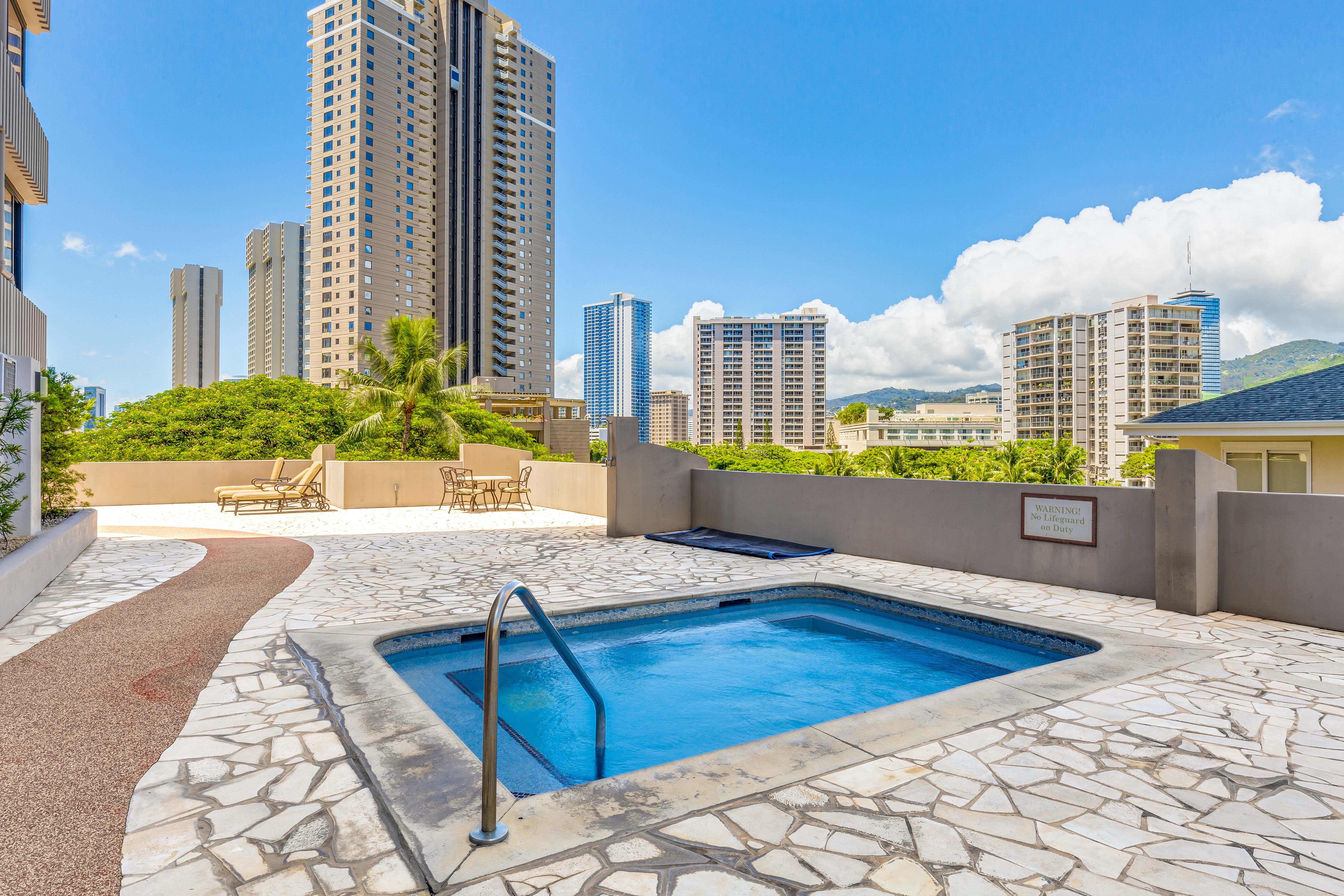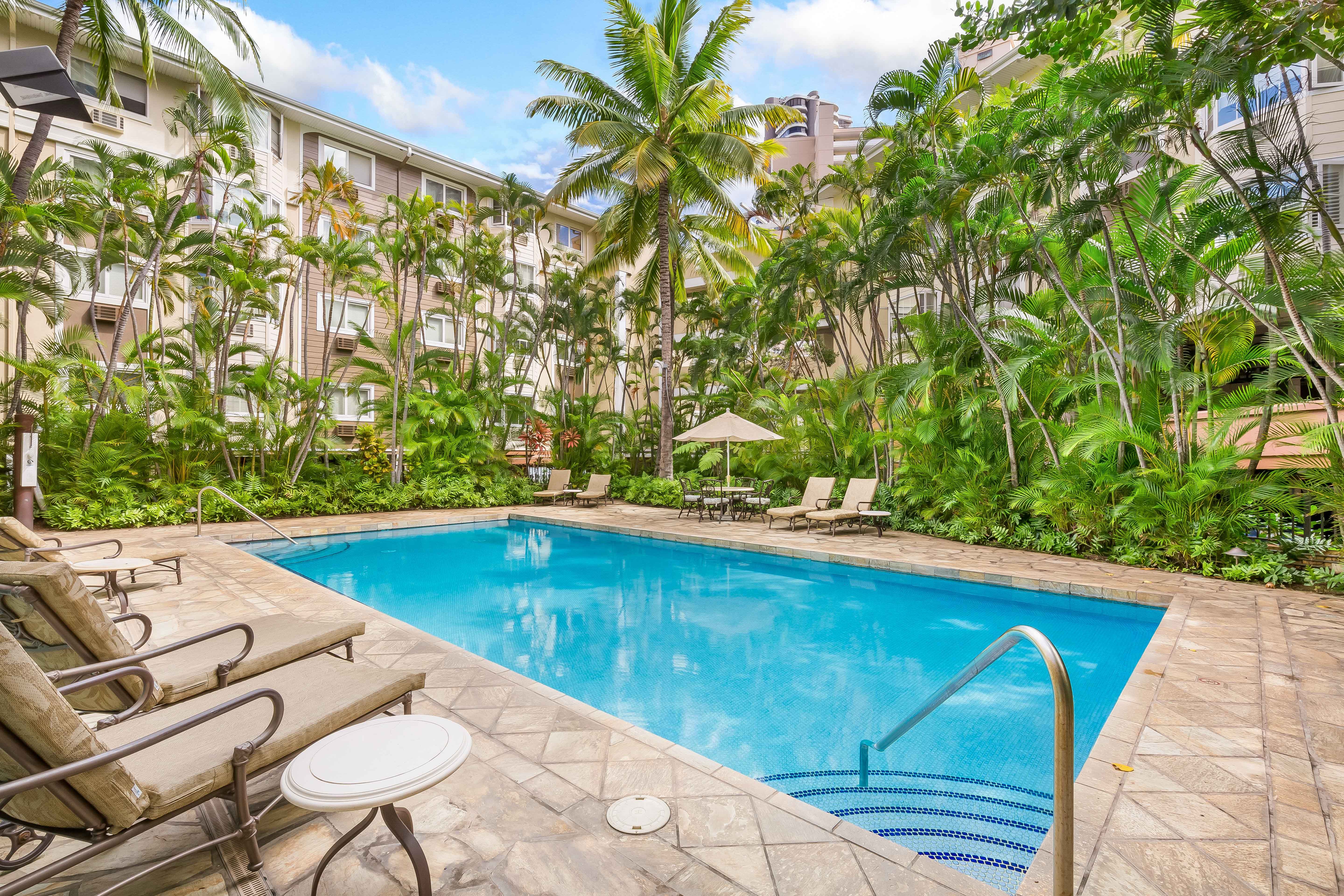 Recently spent a month at this condo, and would highly recommend to anyone who wants a spacious, convenient and well equipped island getaway. Good access to the building from the street or parkade, and ground level was ideal for our kids heading over to the pool daily. The staff was very friendly and helpful, and you can walk to Waikiki Beach or Ala Moana mall, but it's also close to Walmart/Target/Foodland for groceries.