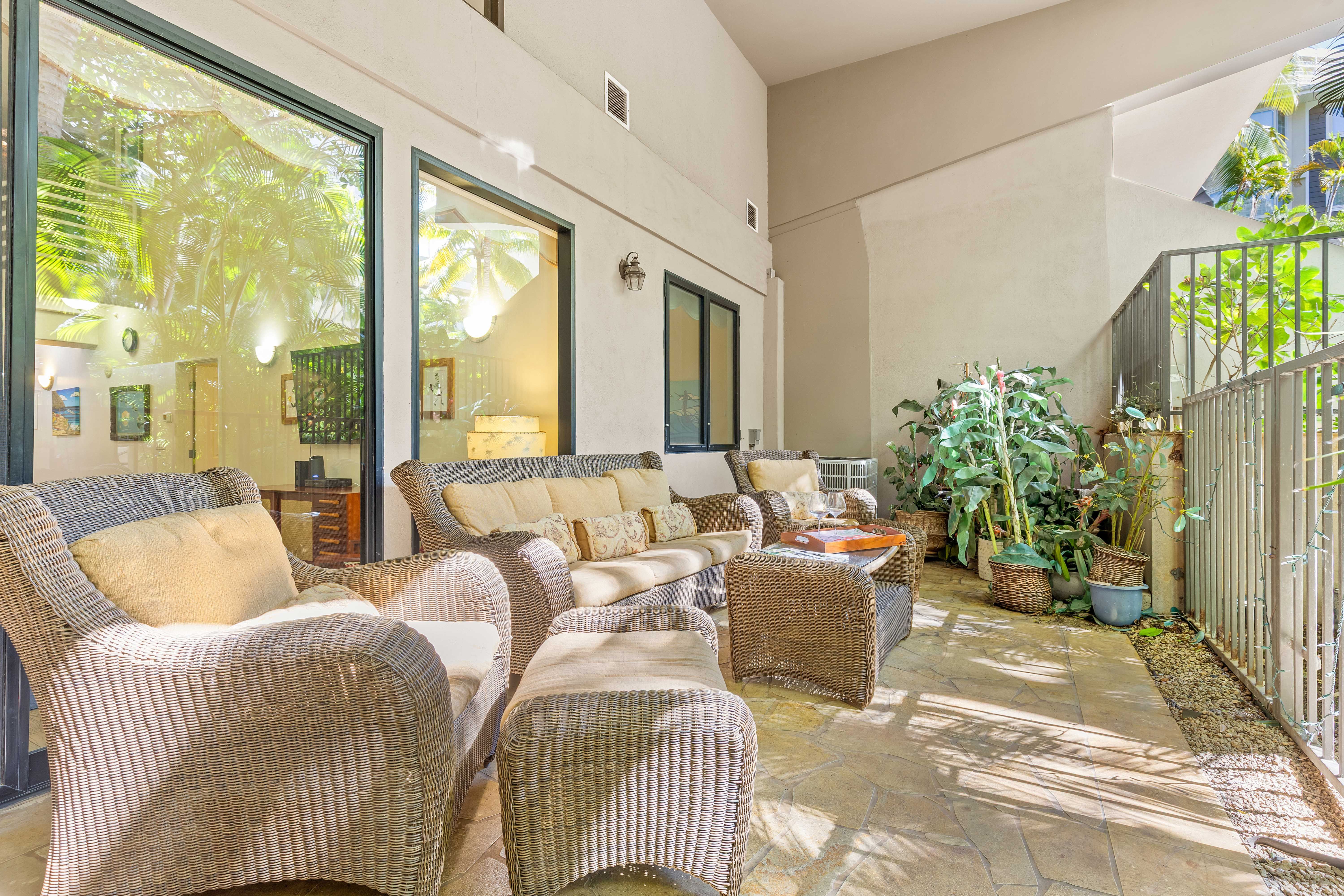 Outdoor lanai was perfect for chilling in the evening while the kids played in the pool! So happy we found Ali'i Beach Rentals, and we will be repeat customers!